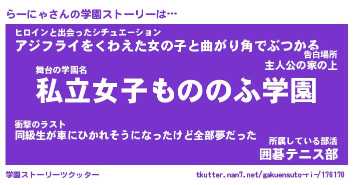 | 意味不明あだ名 | 『ペロリンらーにゃ』『永久保存らーにゃ』 |