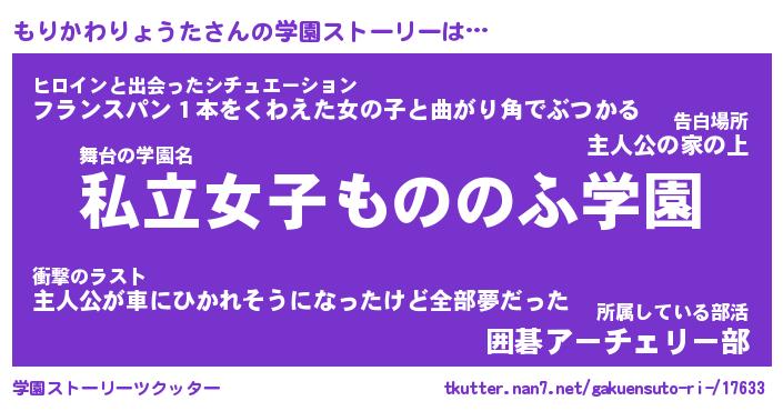 | 男性向けラノベタイトル風あだ名 | 『モリカワリョウタアートオンライン』 |