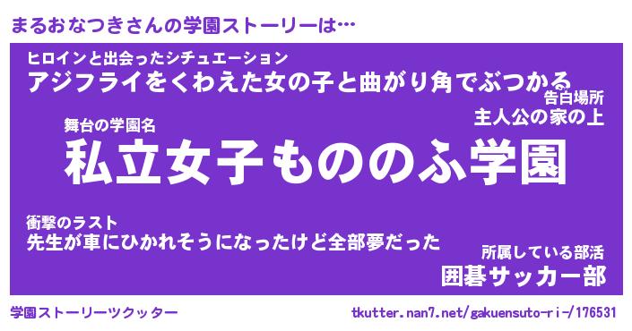 | 女子向けラノベタイトル風あだ名 | 『まるおなつき姫と円卓の騎士』 |