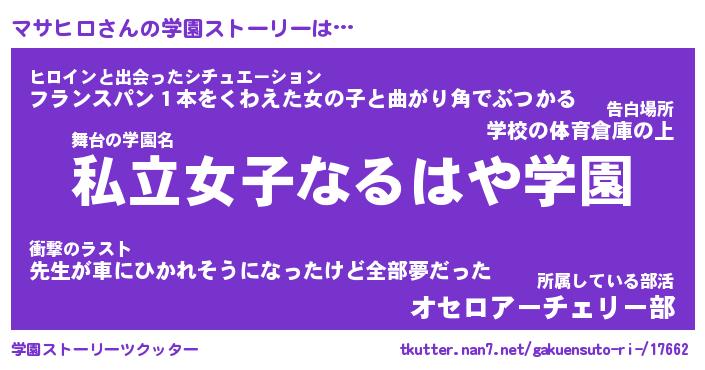 | 意味不明あだ名 | 『ペロリンマサヒロ』『永久保存マサヒロ』 |