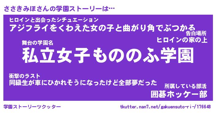 | 女子向けラノベタイトル風あだ名 | 『ささきみほ姫と円卓の騎士』 |