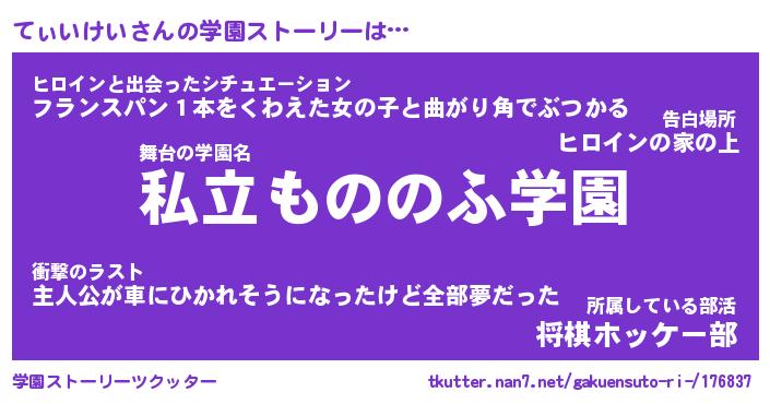 | 男性向けラノベタイトル風あだ名 | 『てぃいけいの憂鬱』 |