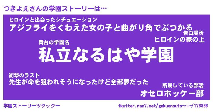 | ファンタジー風あだ名 | 『ツキフェル』『エターナルツキヨエー』 |