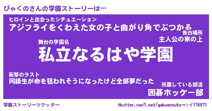 | 男性向けラノベタイトル風あだ名 | 『びゃくのの憂鬱』 |