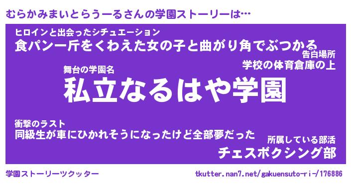 | 男性向けラノベタイトル風あだ名 | 『むらかみまいとらうーるの憂鬱』 |