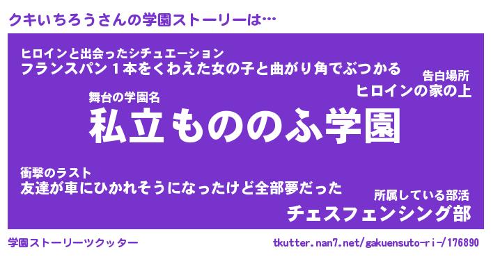 | 男性向けラノベタイトル風あだ名 | 『クキいちろうの憂鬱』 |