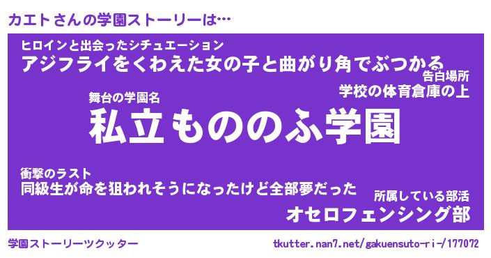 | 女子向けラノベタイトル風あだ名 | 『カエト姫と円卓の騎士』 |