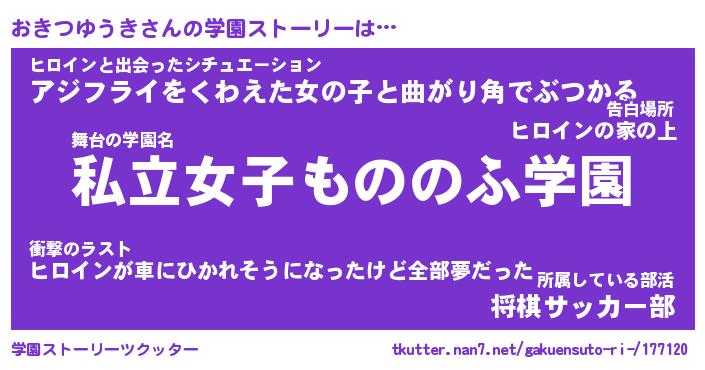 | 男性向けラノベタイトル風あだ名 | 『オキツユウキアートオンライン』 |