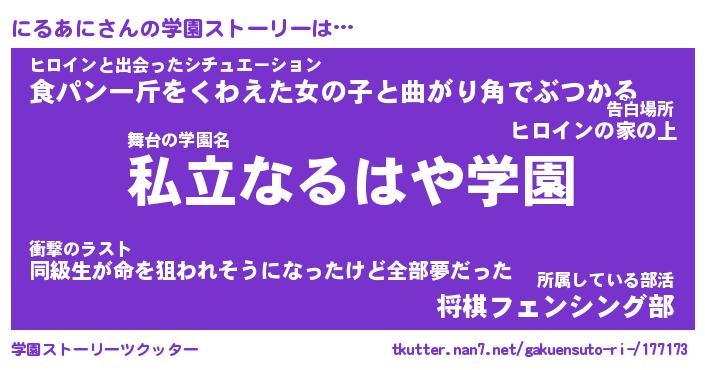 | 伝説のあだ名 | 『伝説のスナイパーにるあに』 |