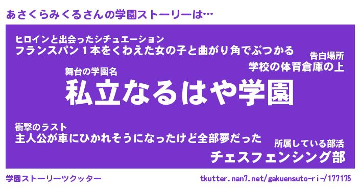 | 男性向けラノベタイトル風あだ名 | 『あさくらみくるの憂鬱』 |