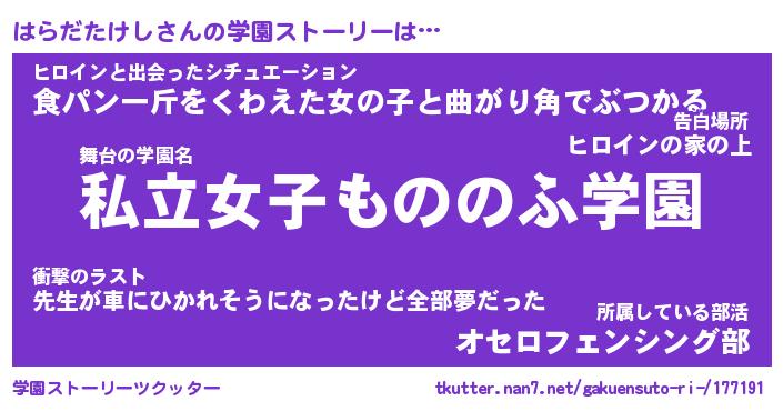 | 女子向けラノベタイトル風あだ名 | 『はらだたけし姫と円卓の騎士』 |