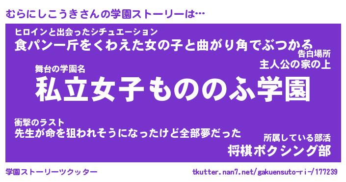 | 伝説のあだ名 | 『封印されし竜騎士むらにしこうき』 |