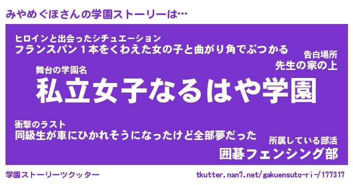 | ファンタジー風あだ名 | 『ミヤフェル』『エターナルミヤメグホー』 |