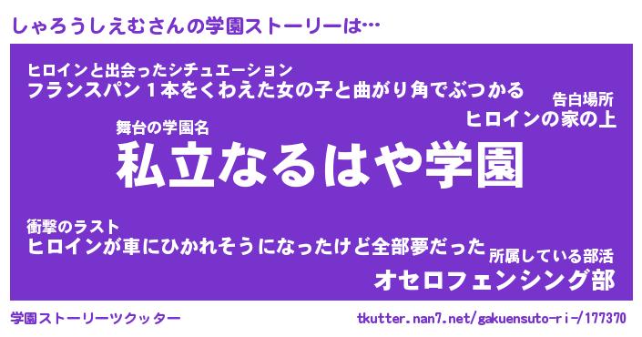 | 男性向けラノベタイトル風あだ名 | 『しゃろうしえむの憂鬱』 |