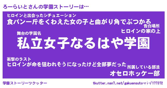 | 女子向けラノベタイトル風あだ名 | 『ろーらいと姫と円卓の騎士』 |
