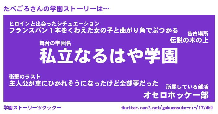 | 男性向けラノベタイトル風あだ名 | 『たべごろの憂鬱』 |