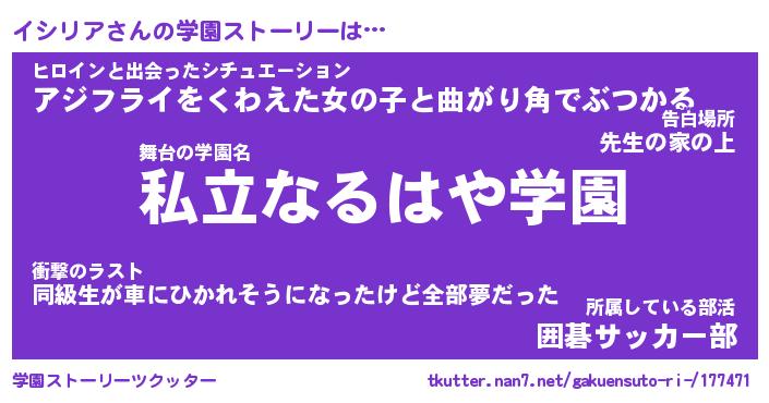| 意味不明あだ名 | 『ペロリンイシリア』『永久保存イシリア』 |