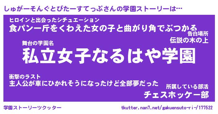 | 胡散臭い通販商品みたいなあだ名 | 『億万長者になれる水晶球…その名も「しゅがーそんぐとびたーすてっぷ」』 |