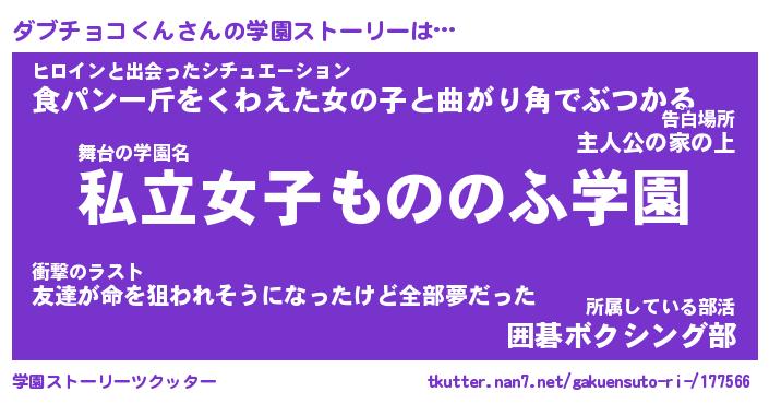| 男性向けラノベタイトル風あだ名 | 『ダブチョコクンアートオンライン』 |