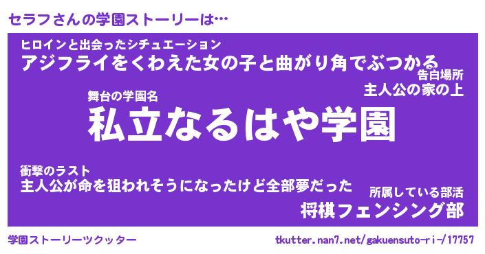 | 男性向けラノベタイトル風あだ名 | 『セラフの憂鬱』 |