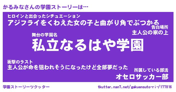 | 伝説のあだ名 | 『伝説のスナイパーかるみな』 |