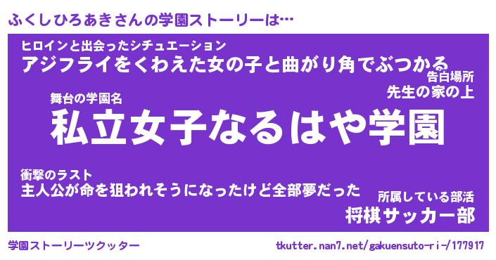 | 伝説のあだ名 | 『封印されしスナイパーふくしひろあき』 |