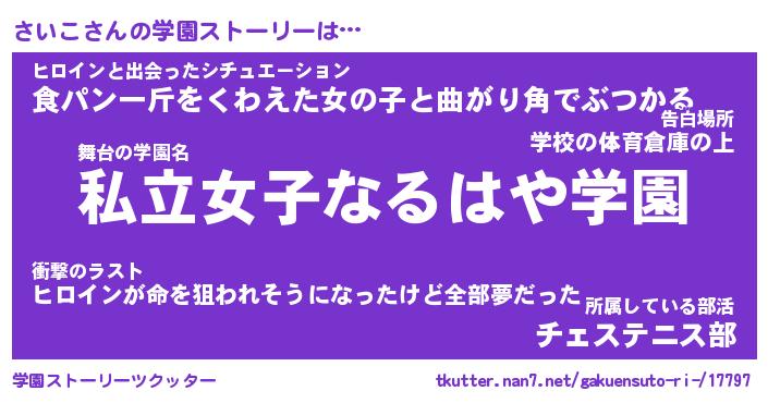 | 告白場所 先生の家の上 …「ふぃぎゅこ」 | 2月17日 06:24 |