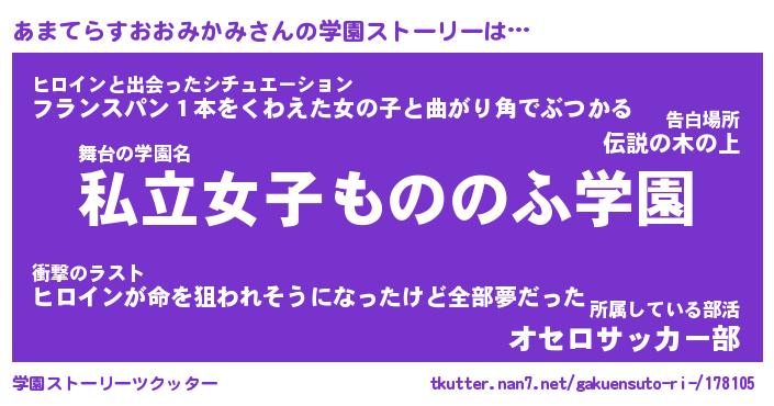 | 男性向けラノベタイトル風あだ名 | 『アマテラスオオミカミアートオンライン』 |