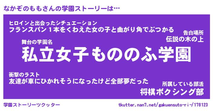 | 女子向けラノベタイトル風あだ名 | 『なかぞのもも姫と円卓の騎士』 |