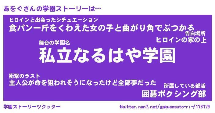 | 伝説のあだ名 | 『伝説のスナイパーあをぐ』 |