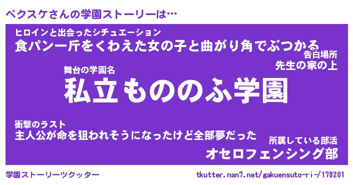 | 女子向けラノベタイトル風あだ名 | 『(仮)ペクスケのやんごとなき事情』 |