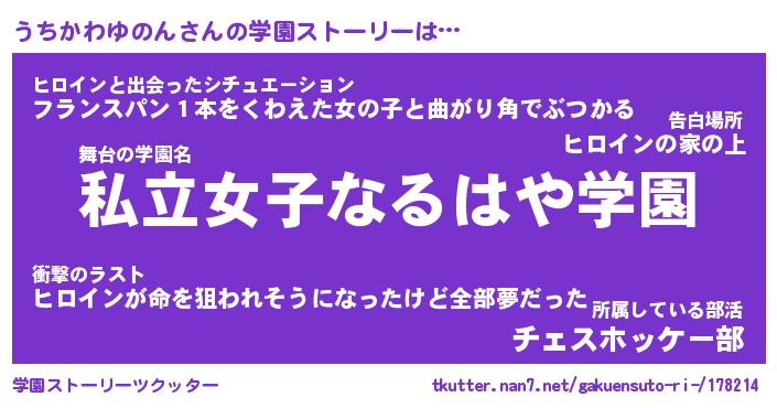 | 伝説のあだ名 | 『封印されしスナイパーうちかわゆのん』 |