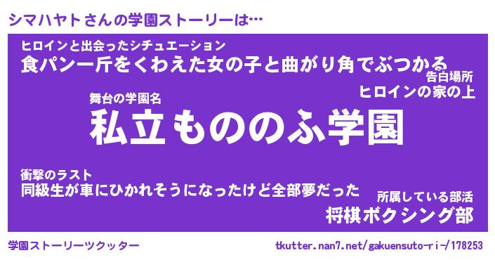 | 女子向けラノベタイトル風あだ名 | 『(仮)シマハヤトのやんごとなき事情』 |