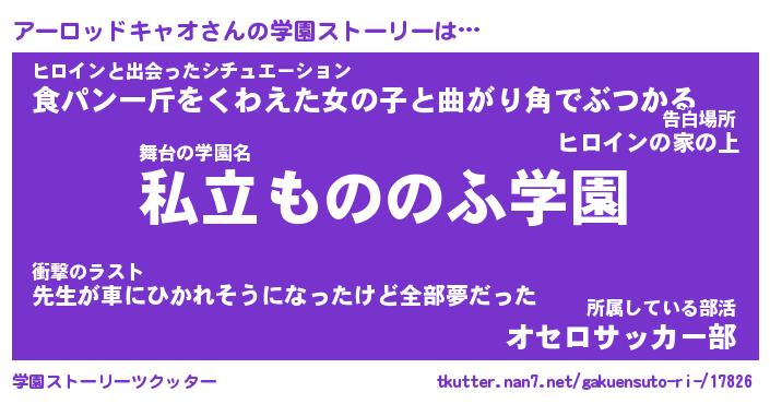 | 男性向けラノベタイトル風あだ名 | 『アーロッドキャオの憂鬱』 |