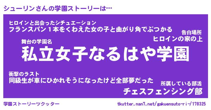 | 女子向けラノベタイトル風あだ名 | 『シューリン姫と円卓の騎士』 |