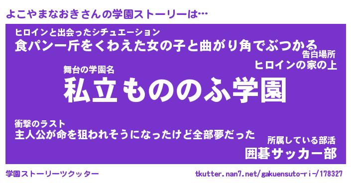| 男性向けラノベタイトル風あだ名 | 『よこやまなおきの憂鬱』 |
