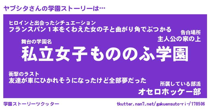 | 男性向けラノベタイトル風あだ名 | 『ヤブシタアートオンライン』 |
