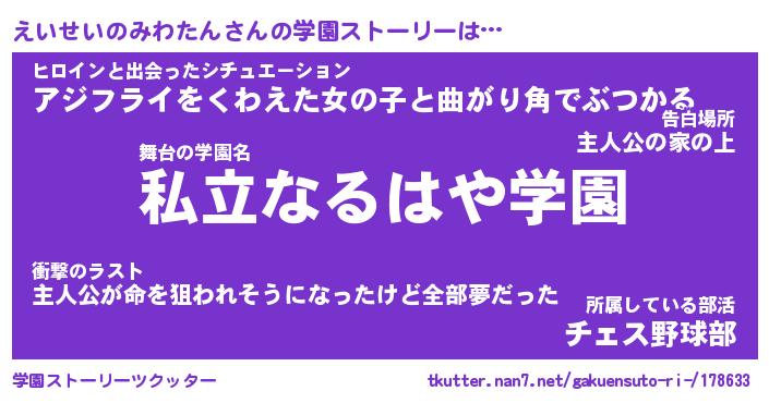 | 肩書あだ名 | 『えいせいのみわたん御曹司』 |