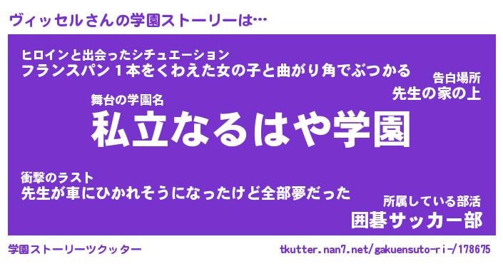 | ファンタジー風あだ名 | 『ヴィフェル』『エターナルヴィッセルー』 |