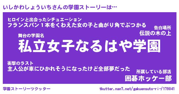 | 女子向けラノベタイトル風あだ名 | 『いしかわしょういち姫と円卓の騎士』 |