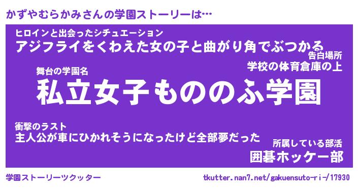 | 女子向けラノベタイトル風あだ名 | 『誰かこのかずやむらかみを説明してください! ~契約から始まるウェディング~』 |