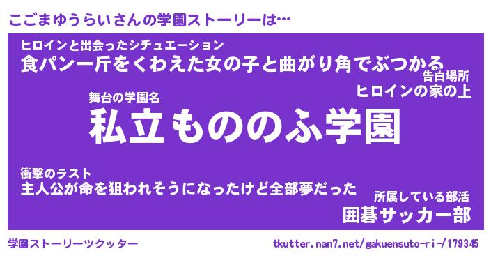 | 女子向けラノベタイトル風あだ名 | 『(仮)こごまゆうらいのやんごとなき事情』 |