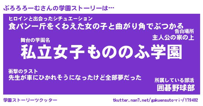 | ヘコむあだ名 | 『ぶろにー』『つくし』『ぶろを』 |