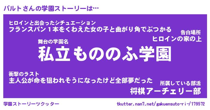 | 男性向けラノベタイトル風あだ名 | 『パルトの憂鬱』 |
