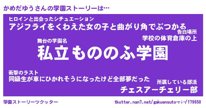 | ファンタジー風あだ名 | 『カメフェル』『エターナルカメダユウー』 |