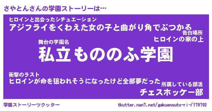 | 女子向けラノベタイトル風あだ名 | 『(仮)さやとんのやんごとなき事情』 |