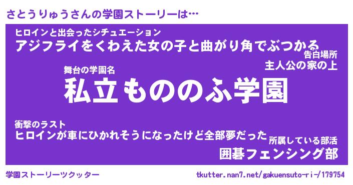 | 女子向けラノベタイトル風あだ名 | 『(仮)さとうりゅうのやんごとなき事情』 |