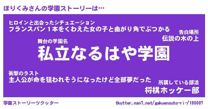 | 男性向けラノベタイトル風あだ名 | 『ほりくみの憂鬱』 |