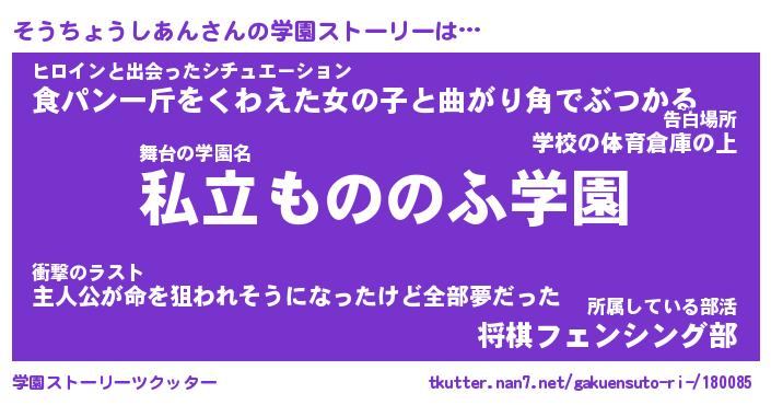 | 男性向けラノベタイトル風あだ名 | 『そうちょうしあんの憂鬱』 |