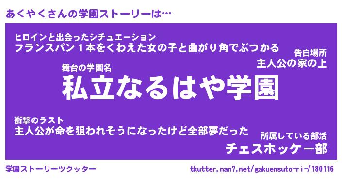 | ファンタジー風あだ名 | 『アクフェル』『エターナルアクヤクー』 |